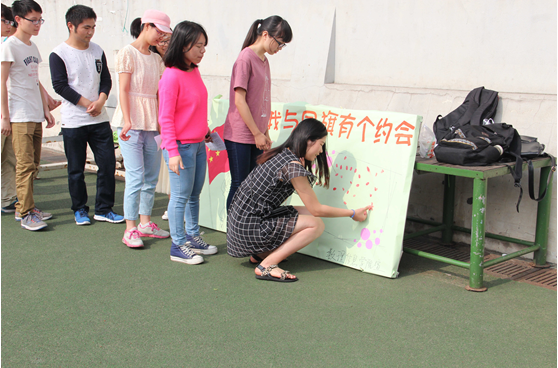 第三部分“我为祖国献祝福”,每个同学在明信片上写下自己对祖国对未来最诚挚的祝福,然后依次投入祝福箱中,把个人小小的祝愿汇聚在一起,积攒着我们对祖国热爱,然后依次在在宣传板上按下自己的手印,不仅是在为祖国点赞也表达了自己的决心、报效祖国的满腔激情!